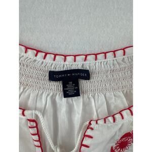 Women’s Tommy Hilfiger Size 1X White with Red Detailing Short Sleeve Shirt. Perfect shirt for Fourth of July or any casual day out.