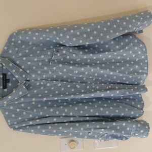 Women's Tommy Hilfiger polka dot blue chambray extra large button down shirt