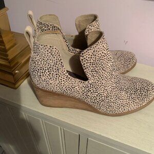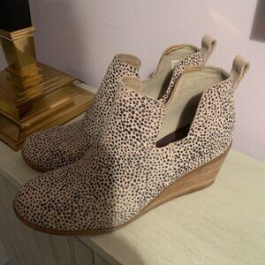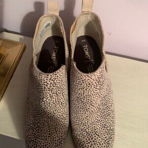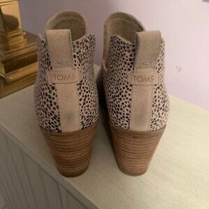 Toms ankle wedge boots! Tan/black small cheetah print, slip on. Super cool! Suede like material/touch. In excellent condition!