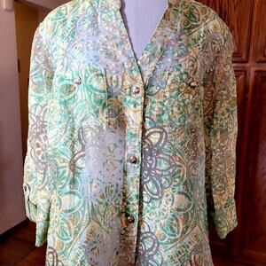 Lark Lane Womens Top Sz 16 Sheer 3/4 Sleeves Retro Button Front Pastel Colors Mom Granny Fairy Y2K Boho. No damage EUC.