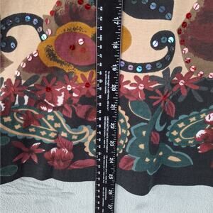 Womens Top 1X Statement Floral Paisley Sequins Artsy Boho Bloomcore Art To Wear