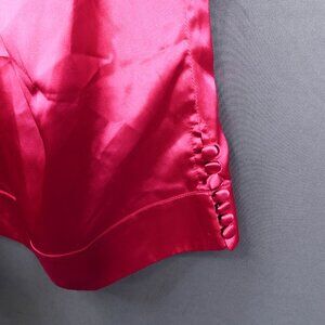 Seller Notes: Satin fabric. Bow on the neckline and covered buttons at the bottom hem.