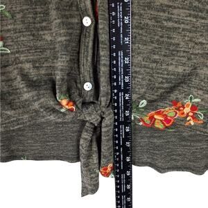 Womens Top 3X Boho Chic Floral Embroidered Peasant Tie Front Button Up Earthy