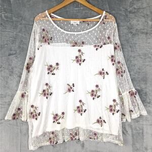 Womens Top 3X White Romantic Floral Sheer Polka Dot Boho Fairy Feminine NWT
