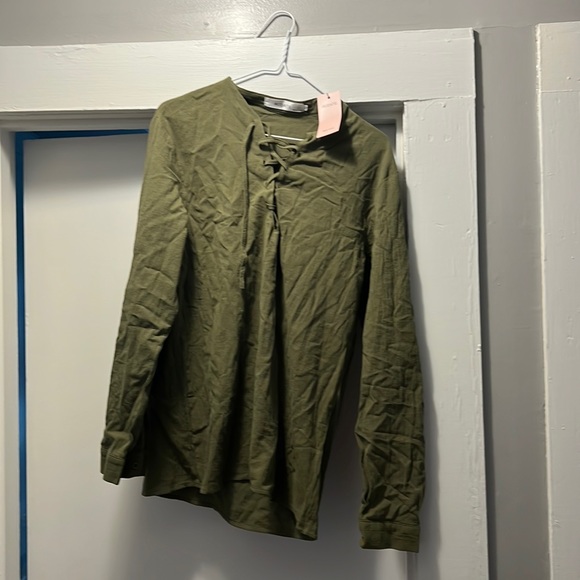 Drawstring army green top