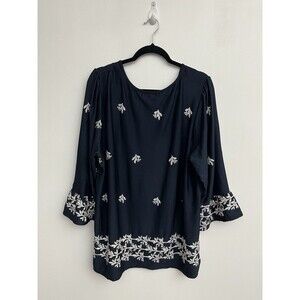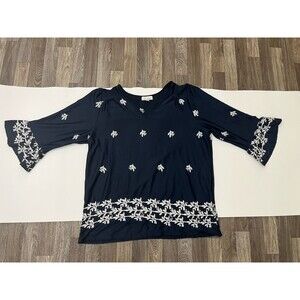 Women’s Top Blouse V Neck Embroidered Plus Size 2XL Pullover Long Bell Sleeve