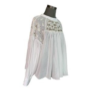 Women’s Top FREE PEOPLE Have It My Way Shirt Beads Embroidered Mutton Sleeve Top
