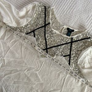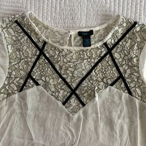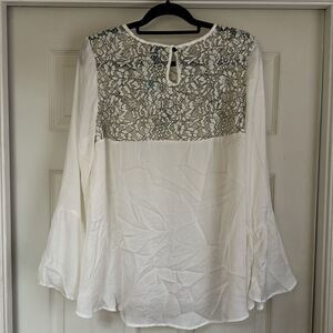 Women’s Top Ivory Black Semi Sheer Flowy Lace Detail Yoke Bell Sleeves Size 1X