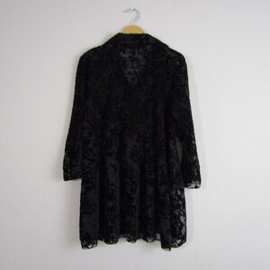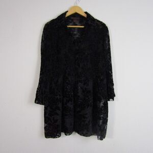 Women's Top L Black Burnout Velvet Roses Witchy Pleated Gothic Whimsygoth Sheer