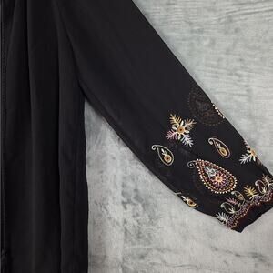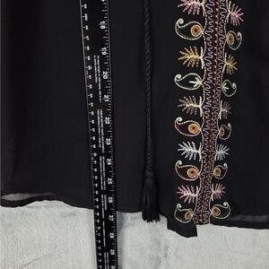 Womens Top Large Black Boho Embroidered Sheer Paisley Whimsygoth Peasant Hippie