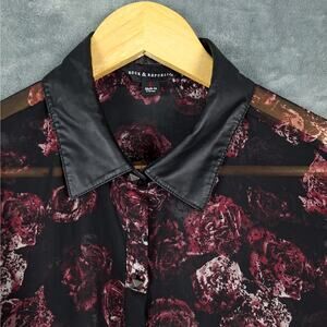 Womens Top Large Black Romantic Floral Fairy Grunge Whimsygoth Button Down Sheer