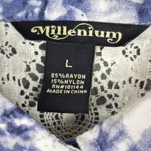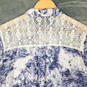 Womens Top Large Boho Crochet Cottagecore Abstract Floral Western Button Up