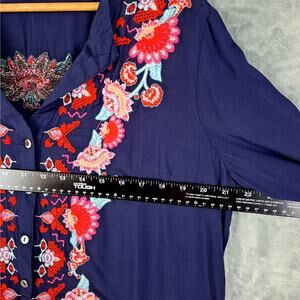 Womens Top Large Boho Peasant Embroidered Floral Cottagecore Hippie Festival