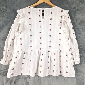 Womens Top Large Cottagecore Eyelet Boho Prairie Peasant Ruffles Embroidered