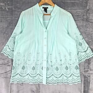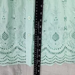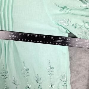 Womens Top Large Green Boho Chic Cottagecore Peasant Embroidered Floral Eyelet