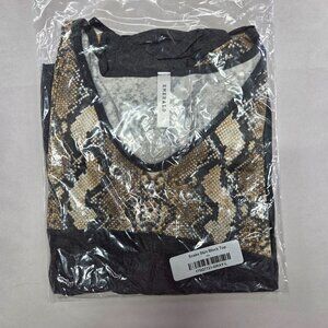 Womens Top Large Snake Skin Block Button Sleeve Detail Side Knot Hem New
