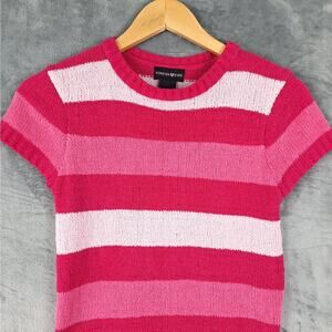 Womens Top Large Vintage Y2K 90s Pink Terry Cloth Striped Summer Casual