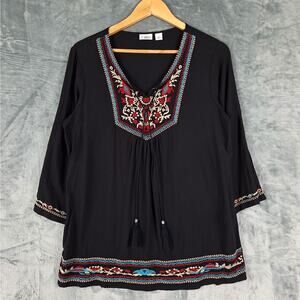 Womens Top Medium Boho Embroidered Floral Peasant Hippie Retro Festival Tunic