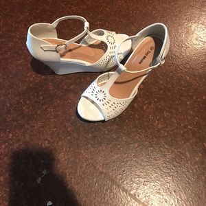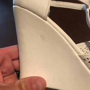Women's White Top Moda Wedge shoes. Size 9. On the right shoe there are a couple of scuff marks (pictured) but not noticeable when wearing. Great condition otherwise. Very clean.