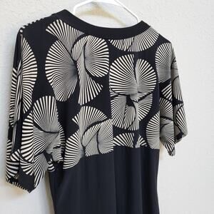 Womens Top PerSeption Concept Size Large Black Short Sleeve Blouse Empire Waist