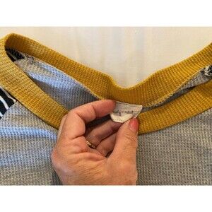 Womens Top Pullover Henley Shirt Gray w/ Gold & Navy Sleeves Size Large