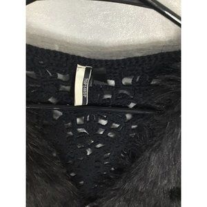 Women's Top Shop Faux Fur Open Knit Black Vest Tie Bottom Small