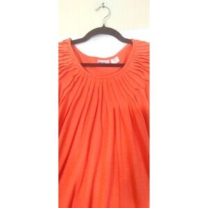 Peachy Pink Orange Gathered High Round Neck Short Bell Dolman Sleeves Size L Top Tunic Popover