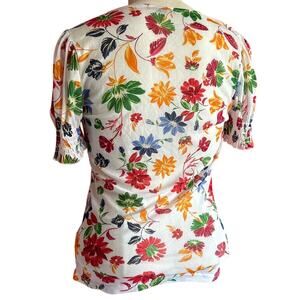 Womens Top Size Large Floral Sheer Cottage Summer Travel Vacation Beach