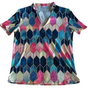 NWT!! Ticosa Geometric Print Ladies Collared T-Shirt