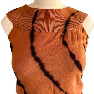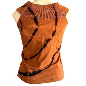 Introducing our Tie-Dyed Collection: Elevate your wardrobe with this chic tank top from International Concepts in petite medium. Crafted from soft sweater material and upcycled with bleach tie-dye, this top features an interesting neckline and comes in a stylish brown and black color combination. Perfect for adding a touch of bohemian flair to your look, it's a versatile addition to our Tie-Dyed Collection.