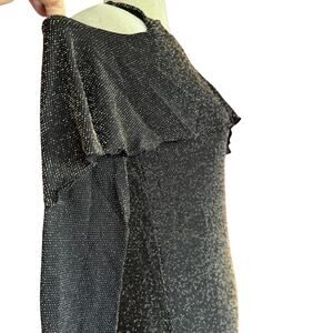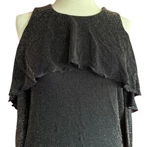 Womens Top Size Small Black Gold Details Open Shoulder Ruffle Detail Glam Party