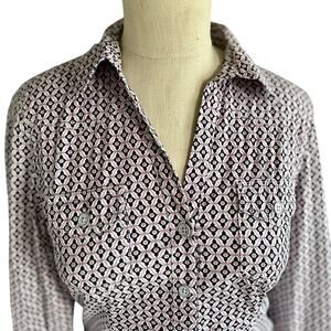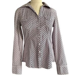 Womens Top Size Small Petite Pink White Geometric Structured Western Business