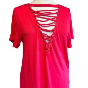 NWT!! Express Peek-a-Boo Deep V Red Blouse