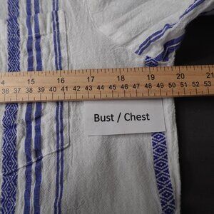 Womens Top Small Blue White Sheer Woven Coastal Cool Artsy Boho Oversized