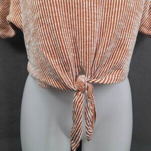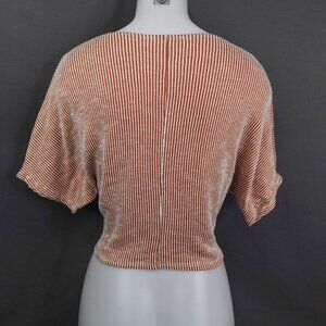Womens Top Small Brown Stripe Crop Tied Y2K Retro Knit Timeless Coastal Cool