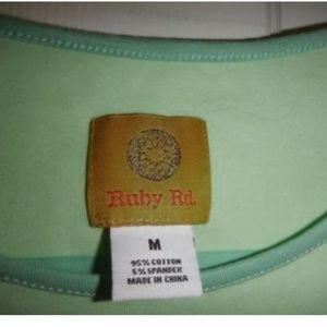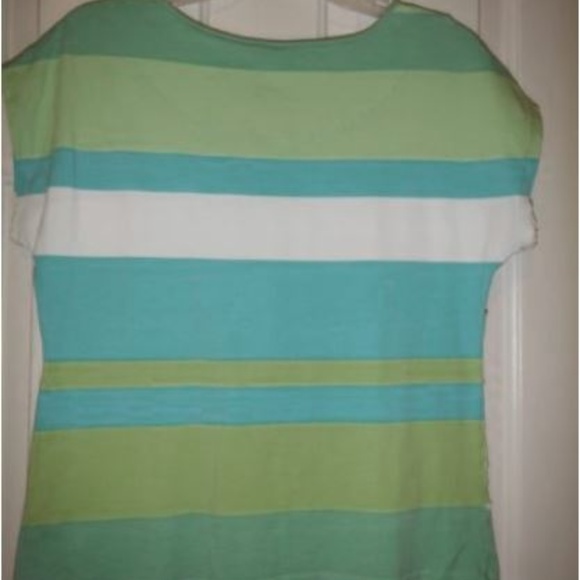 Medium Ruby Rd. Peacock Aqua White Beaded Embellished Striped Cotton Top