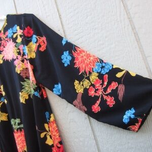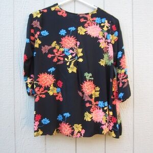 Womens Tops Plus size 2XL Black Red Floral Flowers Popover 3/4 sleeves Whimsigot