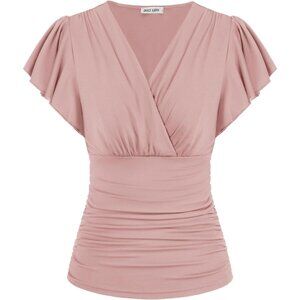 The stylish ruched tops for women with a close, but comfortable fit with easy movement with a wrap v neckline, ruched front, short ruffle sleeves, slim fit, solid color, elegant wrap tops show your graceful curves in any occasions.