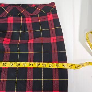 Torrid Betsey Johnson Mini Luxe Ponte Skirt in red plaid is perfect for any casual occasion. The skirt is made of a comfortable knit fabric that consists of 68% rayon, 28% nylon, and 4% spandex. It features an elastic waistband and a high-rise design that flatters your figure. The midi-length skirt is machine washable, making it easy to care for. The skirt is ideal for plus-sized women, with a size type of plus and a size 3. It has a classic zip closure and is suitable for all seasons, whether it's winter, summer, fall, or spring. The skirt is not handmade and is not vintage. It's a stylish addition to any wardrobe and is perfect for any fashion-conscious woman.
