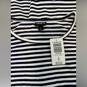 Women’s Torrid Midi Rib Bodycon Dress in Blue & White Stripes Size 4X NWT