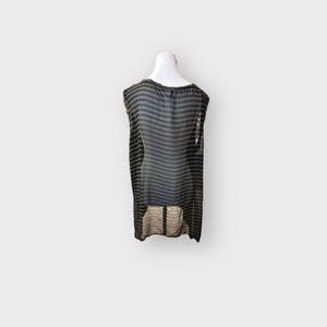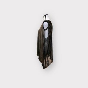 Women’s Torrid Olive Green Shark Bite Hem Skull Tee with Sheer Striped Back 1 1X