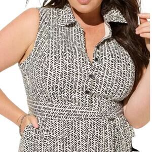 Women's Torrid Poplin Collared Sleeveless Chevron Shirtdress Black White 1