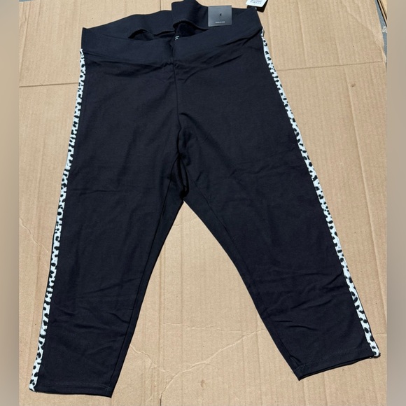 Women’s Torrid Size 2 Retro Double Stripe Capri Leggings Black NWT