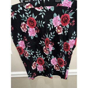 Women’s Torrid Skirt Floral print Black Red Plus Size 5 stretch knee length