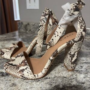 Elegant snakeskin pattern with ankle strap. Perfect for a stylish look. Only put on and they were too big.