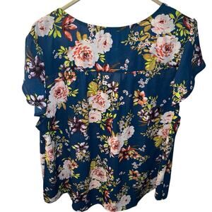 Women’s Torrid Tulip Sleeve Blouse Georgette Floral Navy Size 1