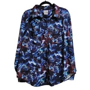Womens Torrid WB Harry Potter Galaxy Button Up Wolves Blue Plus 2 Blouse Madison