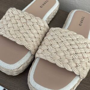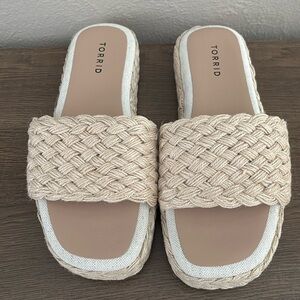 Women’s Torrid, Woven Raffia Platform Extra Wide Slide Sandal, 10WW