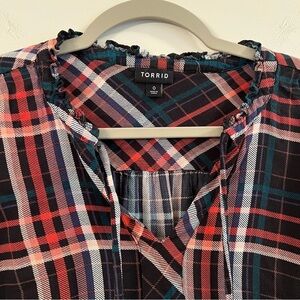 Women’s Torrid blue plaid quarter sleeve blouse size 0X