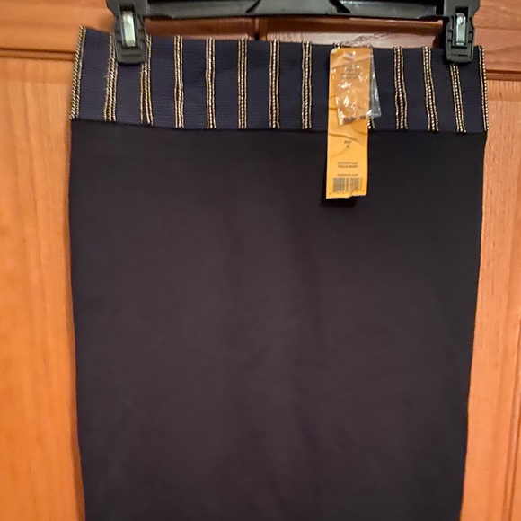 Tory Burch Thalia Skirt in black with Beautiful detail on waist line in Navy blue with gold beading. NWT